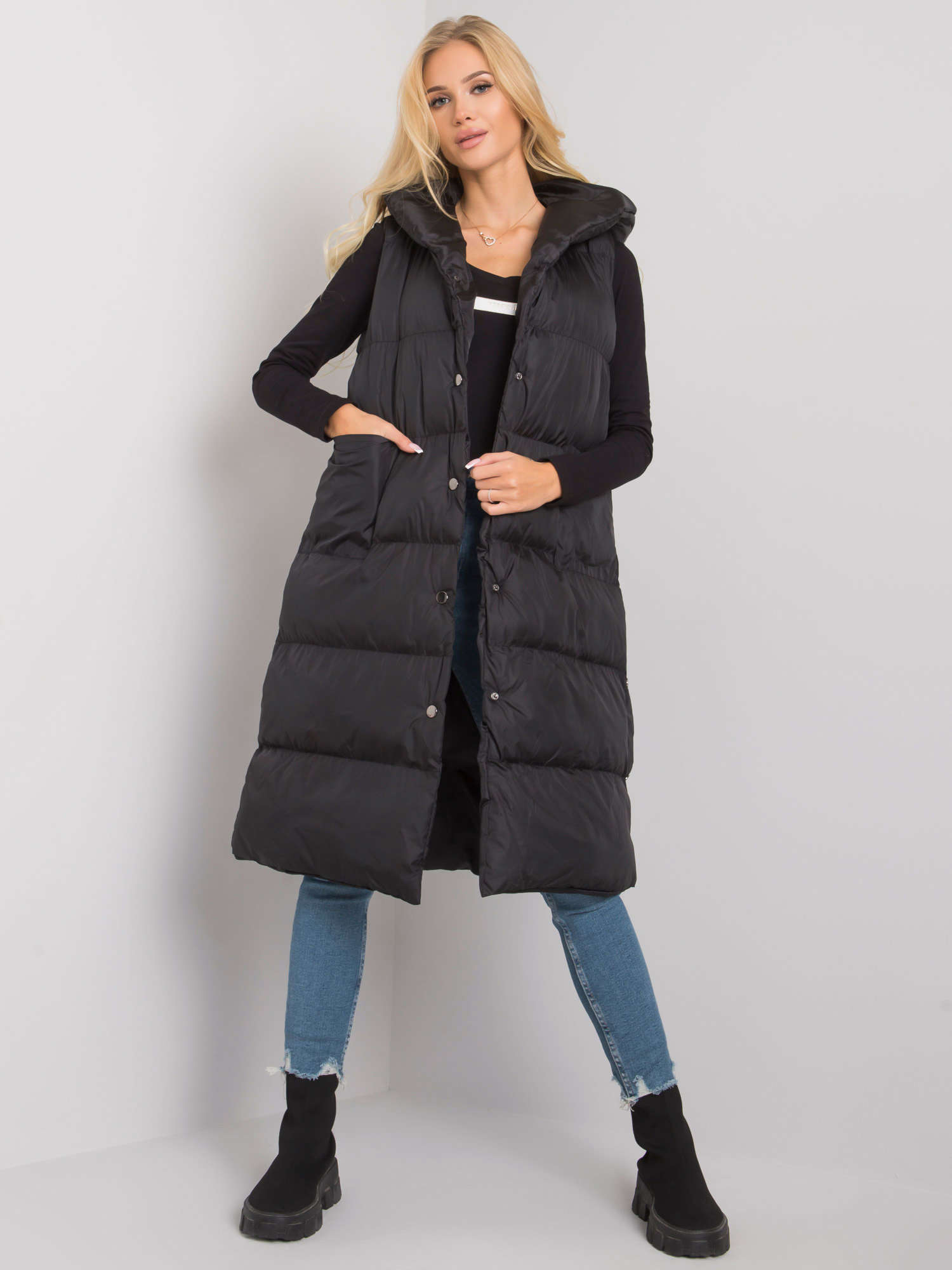 Taka długa, pikowana kamizelka w czarnym kolorze to MUST HAVE tej jesieni. Zapewni ci świetny wygląd, dopełni wielu stylizacji i ochroni przed chłodem. Model posiada kaptur i dwie zewnętrze kieszenie, zapinany jest na napy. Kamizelka sprawdzi się świetnie podczas tworzenia przede wszystkim sportowych stylizacji.